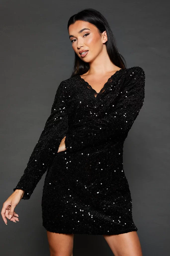 There’s something so timeless yet party-perfect about a black sequin dress, and this long sleeve mini is an absolute birthday showstopper. The V neckline and slight puff sleeves add just enough detail to make it feel elevated, while the allover sequins keep things sparkling from every angle. It’s a great idea for anyone wanting a bit more coverage while still bringing maximum glam energy to the party.