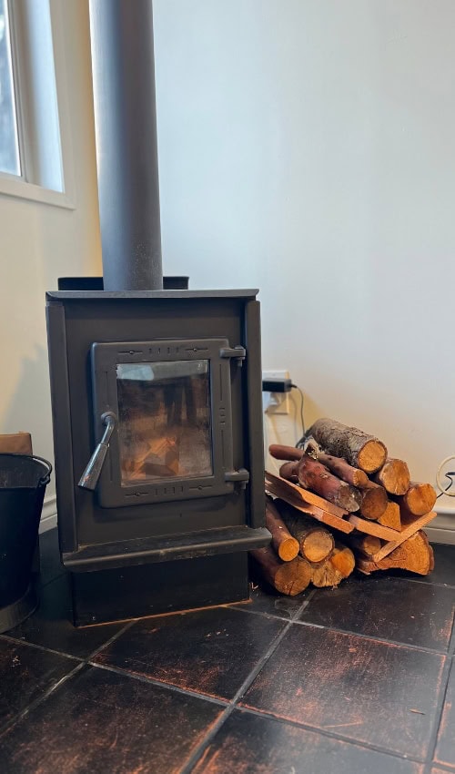 The cottages are stocked with purified water, coffee, towels, and kitchen utensils. And the wood-burning stove is stocked with firewood (baseboard heating is also an option).