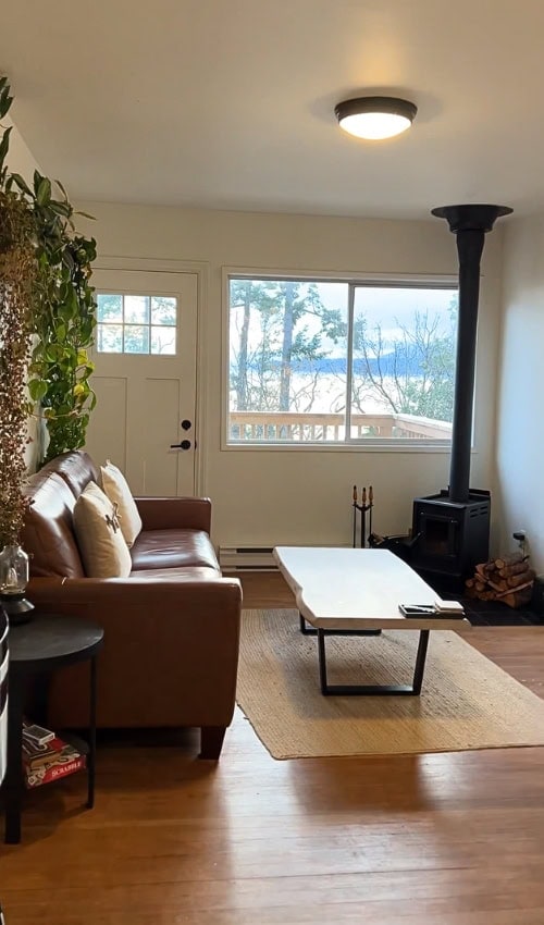 - Arbutus House – Perfect for families or larger groups, this 3-bedroom heritage home is all about warmth and comfort. Picture evenings by the wood-burning fireplace, a private deck for stargazing, and even a rec room for a little fun after dark.