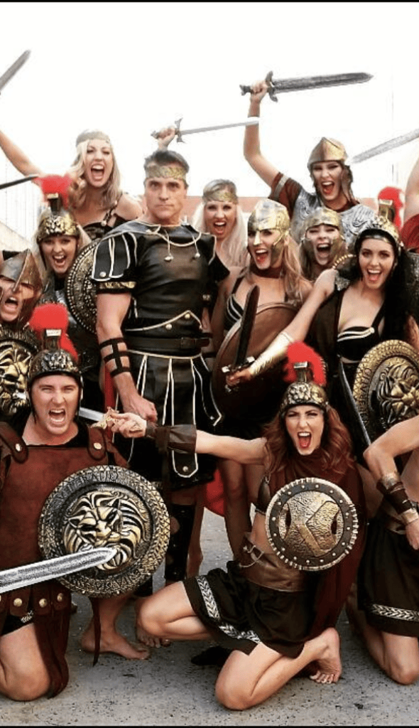 It’s giving abs, armor, and ancient aggression. For couples who love to yell “This! Is! Halloween!”