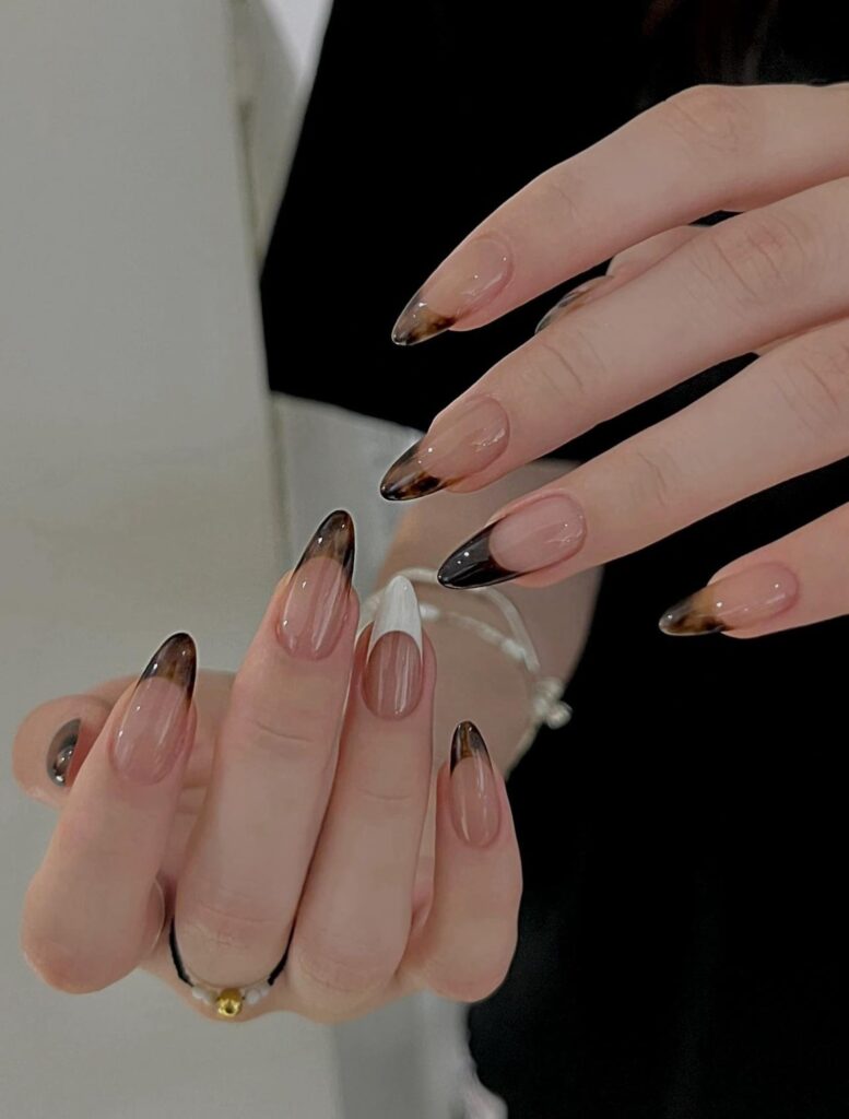 Choosing this look is great if you want nails that are interesting but not too loud. The fade makes the design feel smooth and soft rather than stark. It pairs beautifully with casual sweaters or more structured pieces like leather jackets. It’s an ideal choice for anyone who loves earthy tones but wants something a little unexpected.