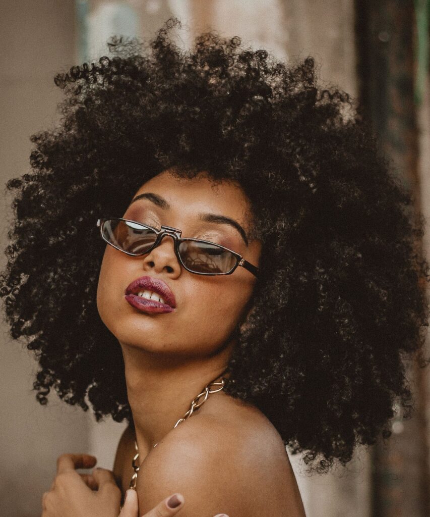 There is something so powerful and freeing about a full, fluffy afro. This look is all about volume, attitude, and letting your curls breathe without manipulation. I remember the first time I wore mine like this, I felt like I was stepping into my power, it’s such a statement! The shape, the fullness, the way it moves, it’s just everything.