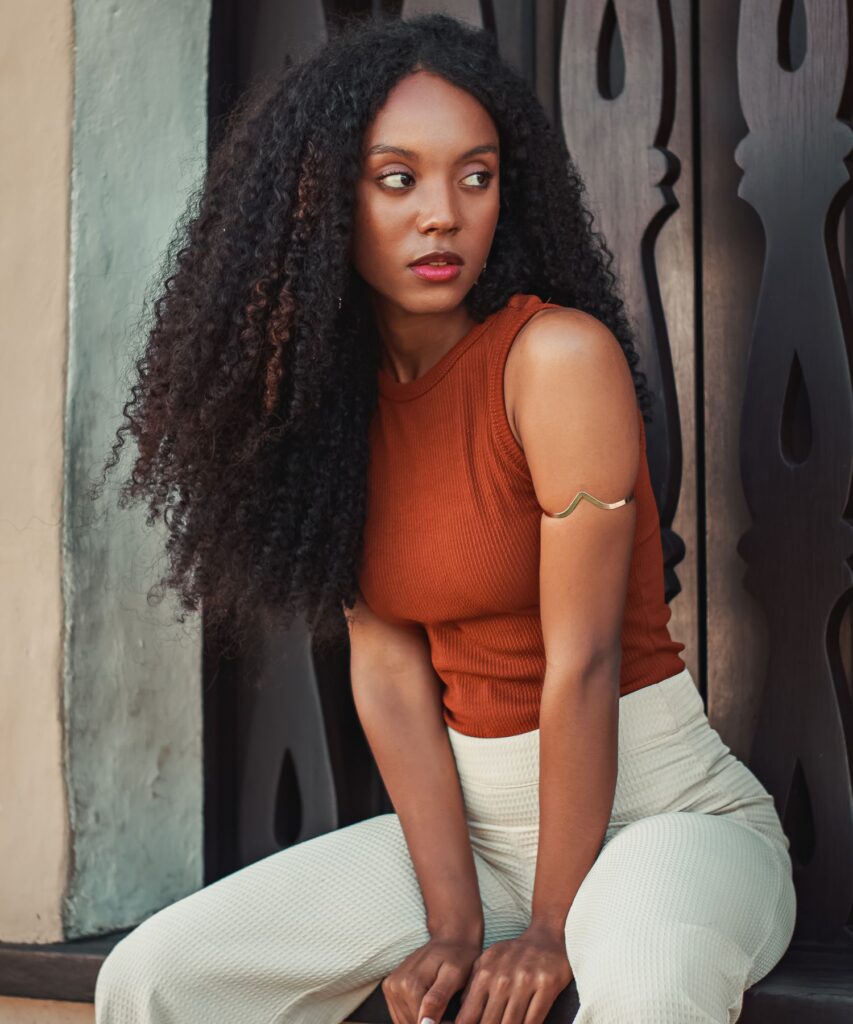 Keep your ends trimmed and moisturized, and use a light leave-in to keep everything defined without weighing it down. I’d style this with a sleeveless top and a pop of color on the lips, it’s simple, effortless, and makes you feel beautiful just as you are.