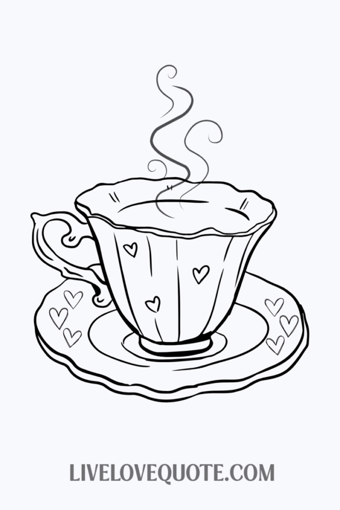 Okay, this cute and sweet teacup is such a vibe. I swear you can almost smell the warm tea just by looking at it. The little hearts on the cup and saucer make it extra special, like a warm hug in sketch form. If you like vintage posh things this is perfection.