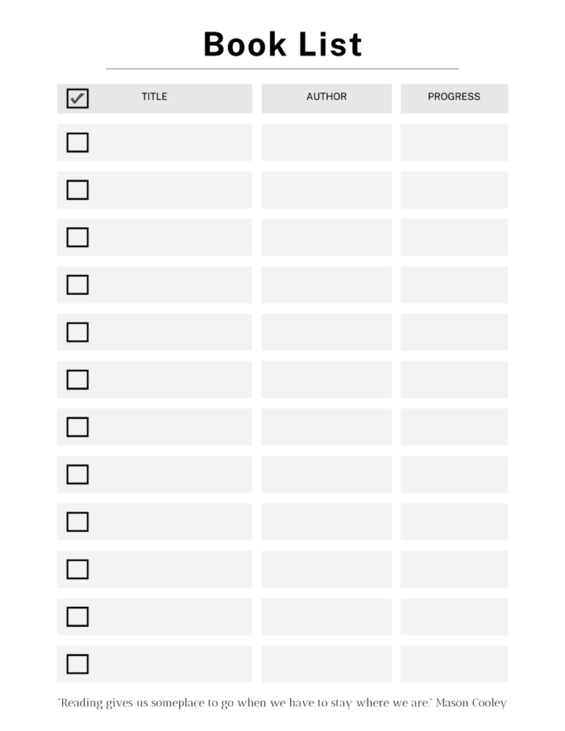 For book lovers, this template is a must-have. It helps you list all the books you plan to read and check them off as you go. Stay motivated to hit your reading goals and discover new favorites along the way.