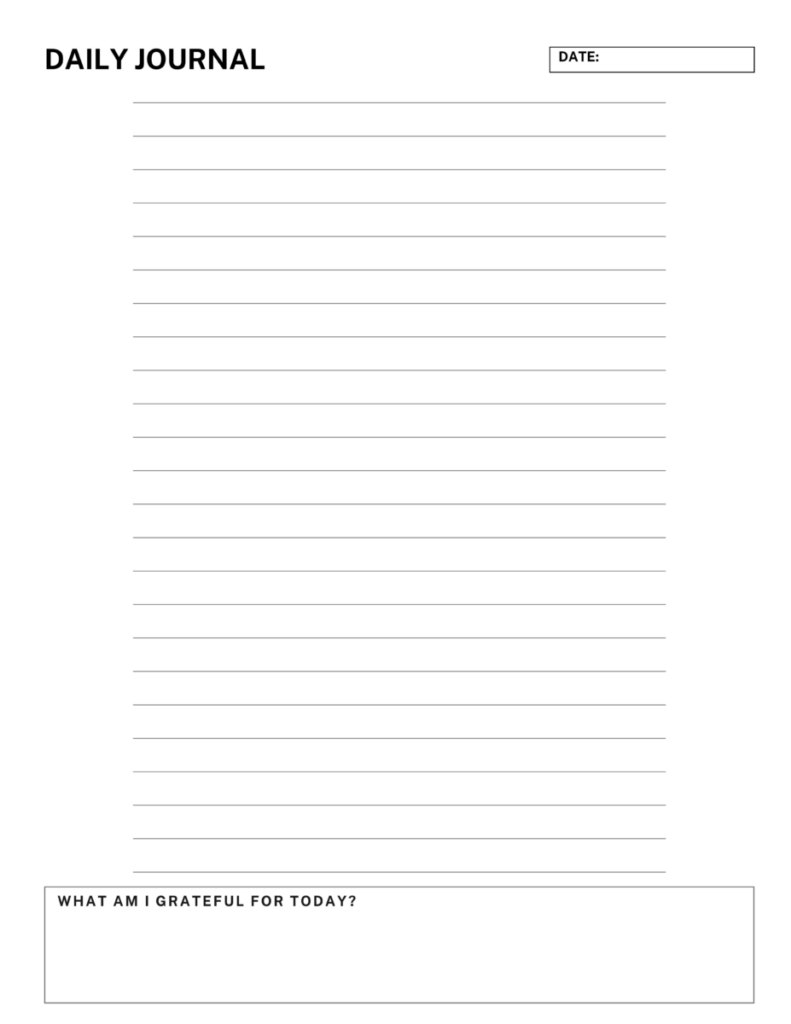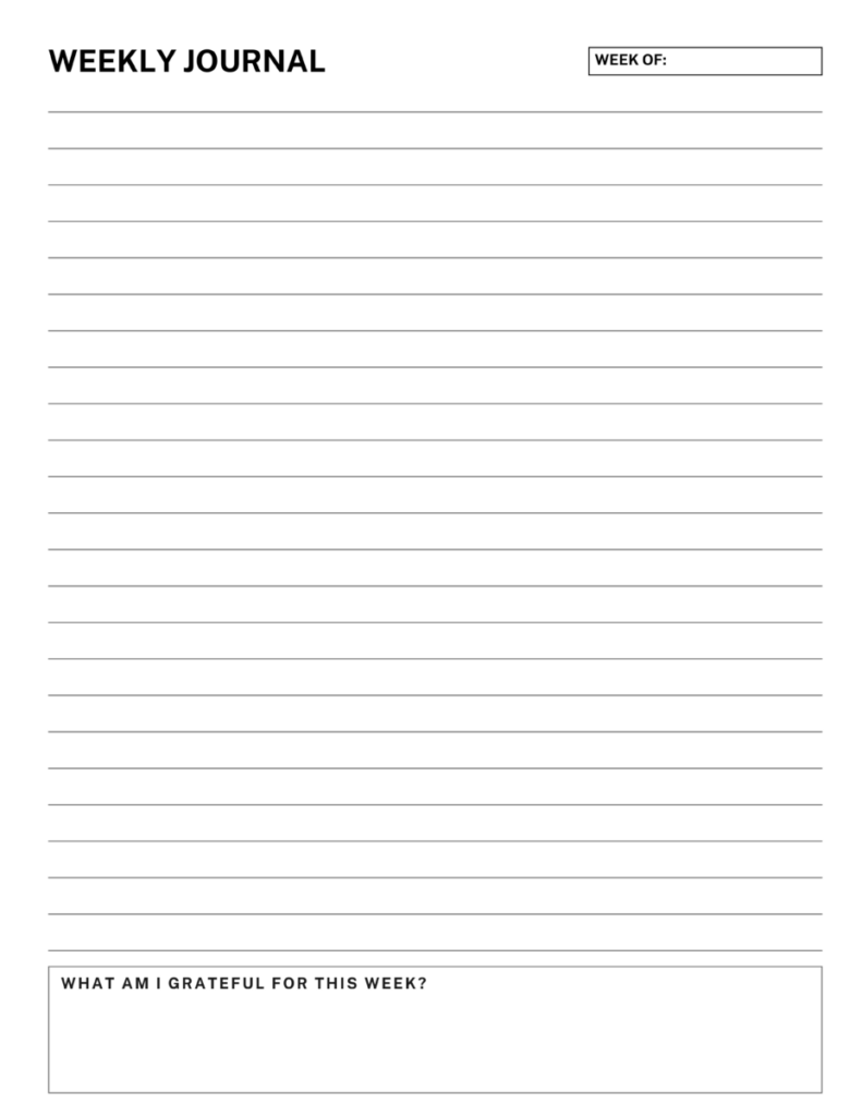 A weekly version of the daily journal, this template is ideal for reflecting on your week and planning for the next. It’s great for setting goals and celebrating small wins.