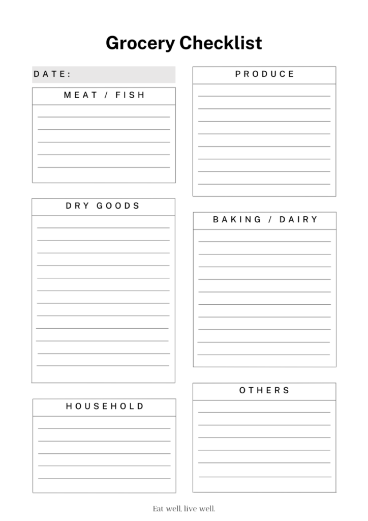 This template ensures you never forget an item at the store. Organize your shopping list by categories to make your grocery runs quick and efficient.