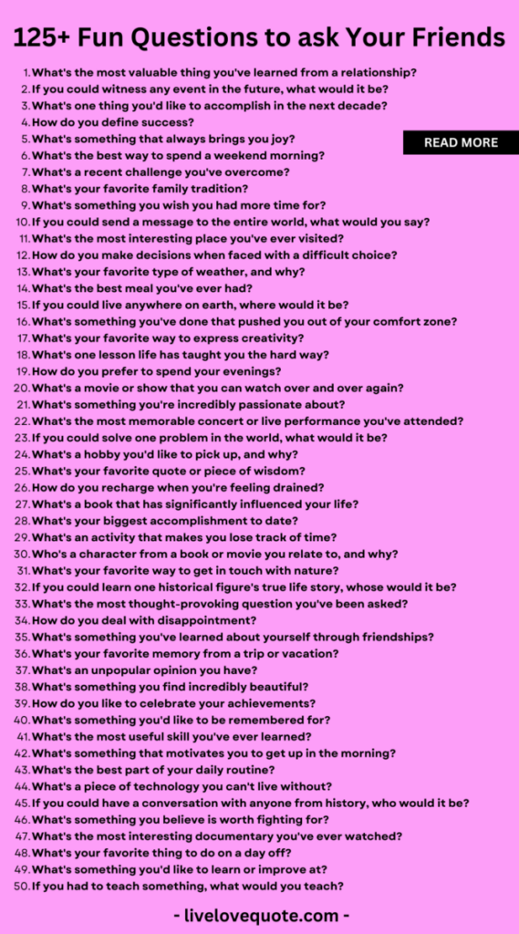 I love finding ways to make conversations with friends more exciting, and this list of 150 questions is one of my favorites. It’s packed with ideas that can lead to laughs, surprising stories, and even some interesting debates. They’re perfect for making any hangout or road trip more fun and memorable.