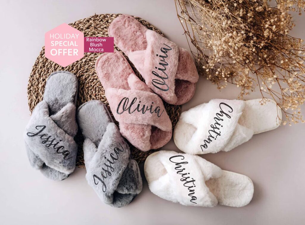 Plus, the custom name detail makes them such a thoughtful and fun gift for your besties. Everyone at the party will feel extra special slipping into these adorable slippers!
