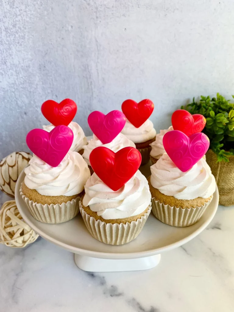 These cupcake heart toppers are an adorable way to dress up desserts for your Galentine’s party. I love how the bright red and pink hearts stand out against fluffy white frosting, creating a sweet and festive look.
