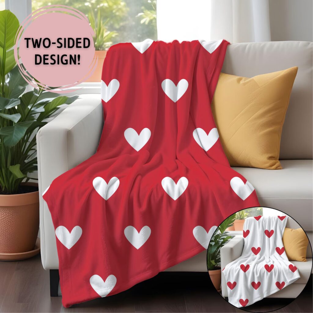 This hearts throw blanket is the coziest addition to any Galentine’s Day setup. I love how the cute heart patterns add a festive vibe, making it perfect for snuggling during a movie night with your besties.