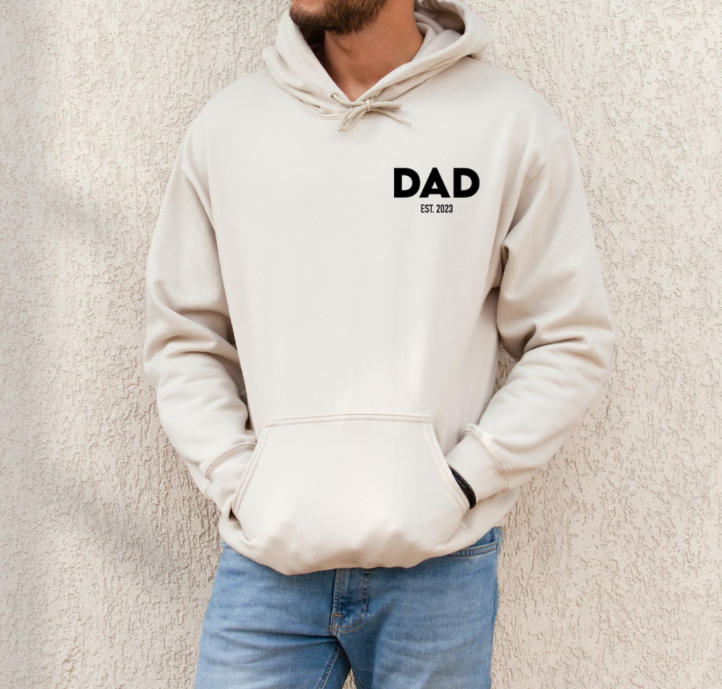 Show dad some love with this cozy sweatshirt with the words “DAD” and date he became a father underneath. Perfect for lounging at home or running errands, this sweatshirt is a comfy and stylish way to celebrate his role in the family.
