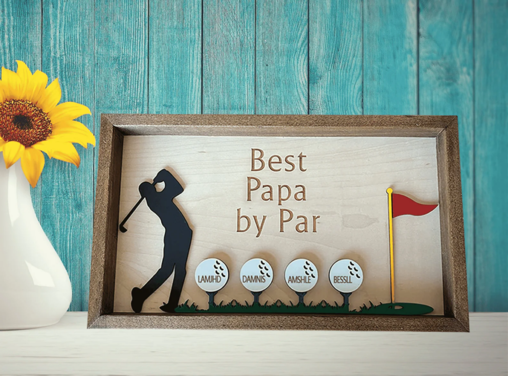 Tee up some love with this golf-themed frame with the words “Best Dad by Par” and little golf balls with the names of his children. Whether he’s a golf aficionado or just enjoys hitting the links, this personalized frame is a hole-in-one gift for any dad.