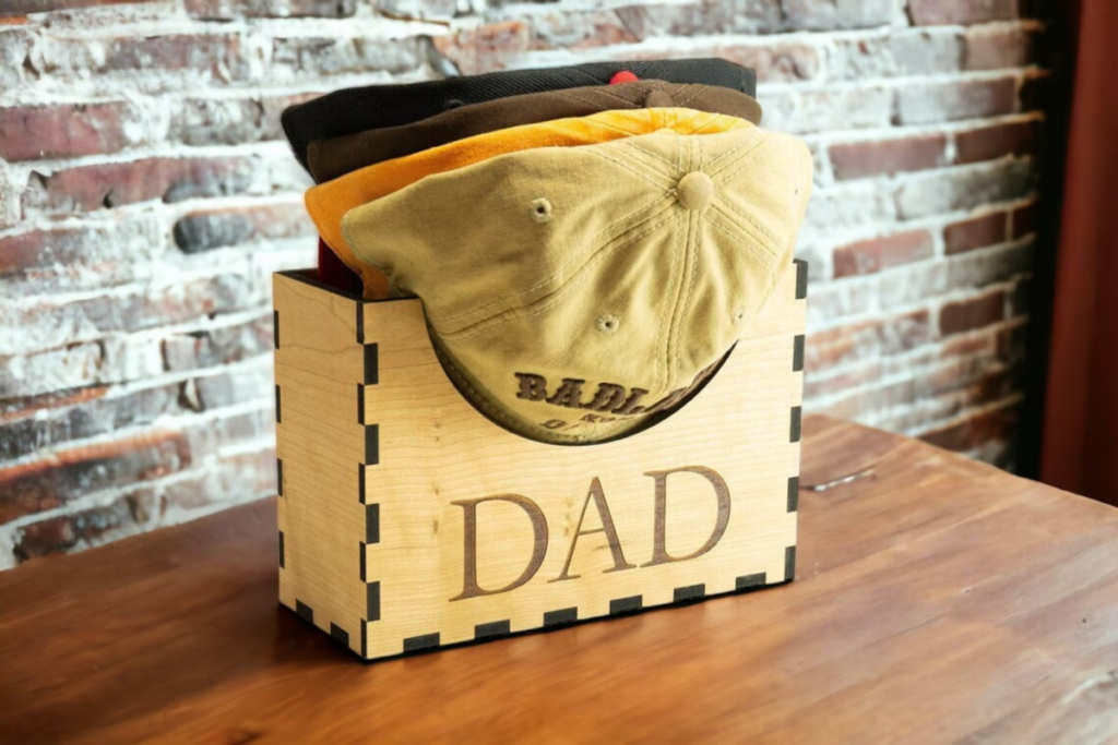 Keep dad’s hats organized and on display with this custom hat holder with the words of your choice. Whether he’s a baseball cap aficionado or just likes to keep his head covered, this personalized holder is a stylish and practical addition to his space.