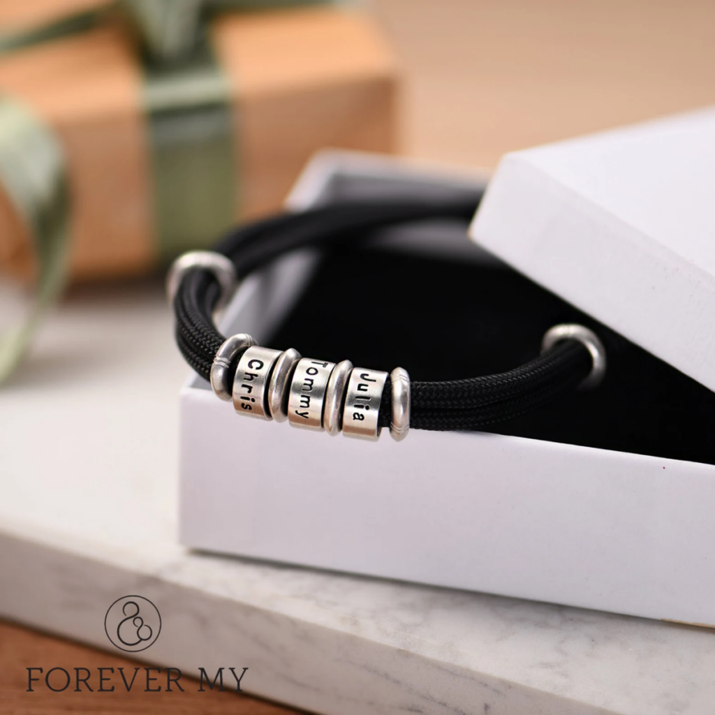 Show dad how much he means to you with this stylish adjustable cord bracelet personalized with the names of his children. Add an extra touch of personality with optional emojis on the beads, making it a truly one-of-a-kind accessory.