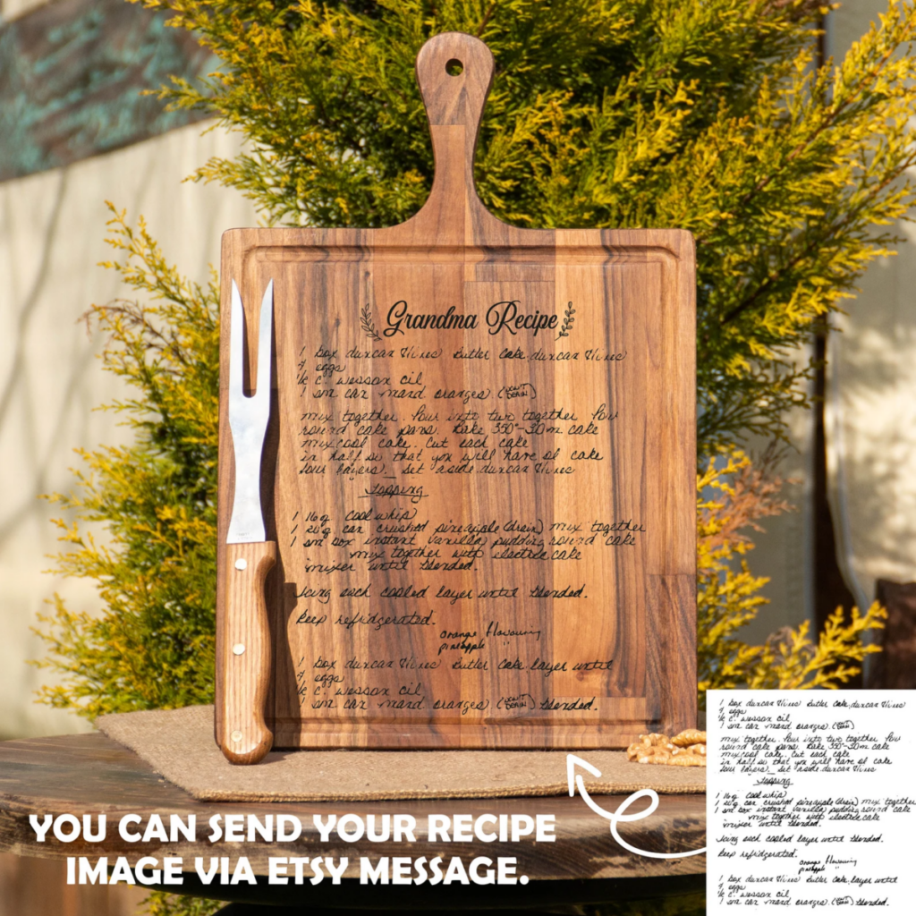 A handwritten recipe cutting board is a unique and sentimental gift, perfect for the man who enjoys cooking. Simply provide a cherished recipe, and it will be laser-engraved onto a high-quality wood cutting board. It’s a beautiful way to preserve family traditions and create a keepsake that he can use and display.