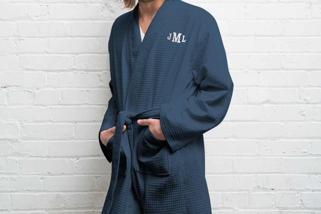 A personalized navy waffle robe is a luxurious gift that combines comfort with style. Made from soft, absorbent material, this robe can be customized with his initials embroidered on the chest. It’s perfect for lounging at home or after a relaxing bath.