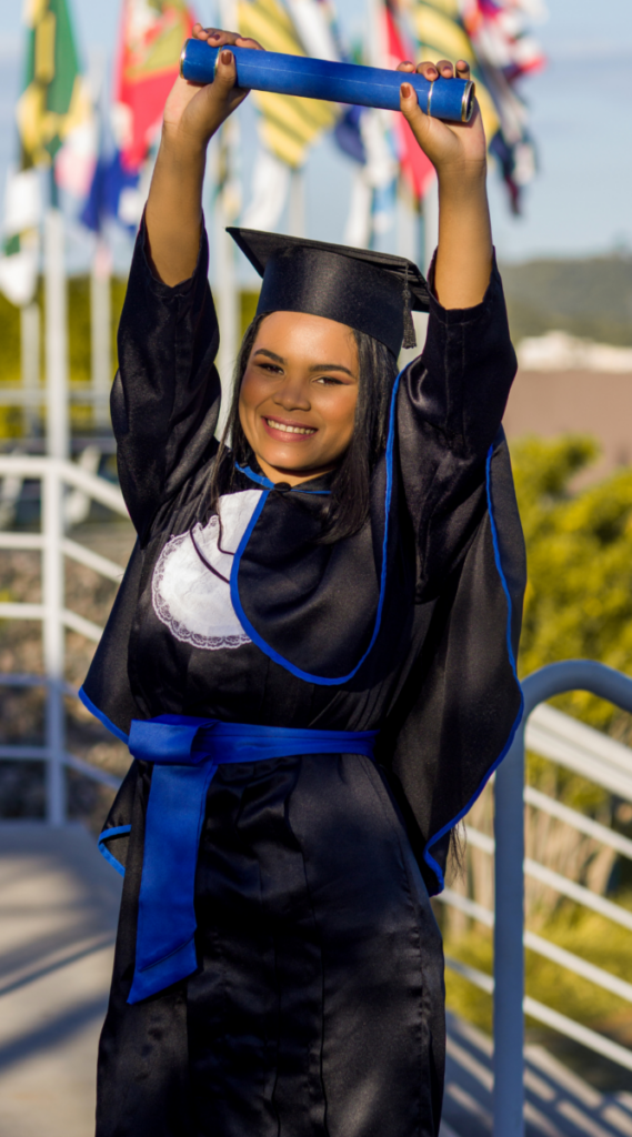 46. Walk with purpose and vibrant pride, your graduation gown adorned with patterns of heritage, each step a stride towards a future as bright and bold as the fabric of your accomplishments.