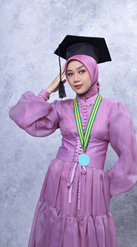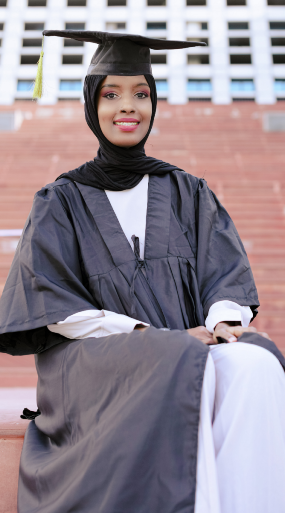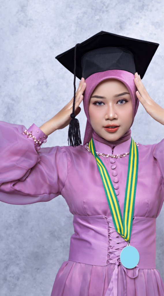 31. Embrace your achievements with poised elegance, your graduation cap perched perfectly above a vision of cultural grace, a world of knowledge reflected in your eyes, ready to unfold the chapters of tomorrow.