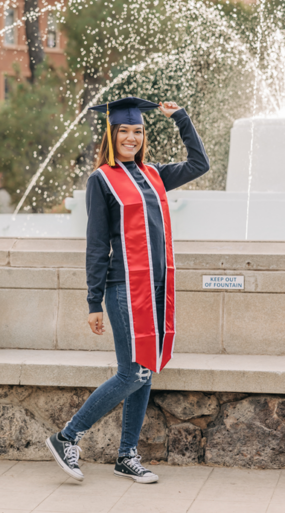 55. Rest easy against the fountain’s edge, your graduation day joy as effervescent as the sparkling waters behind you, your cap perfectly poised in a celebration of your hard-earned success.