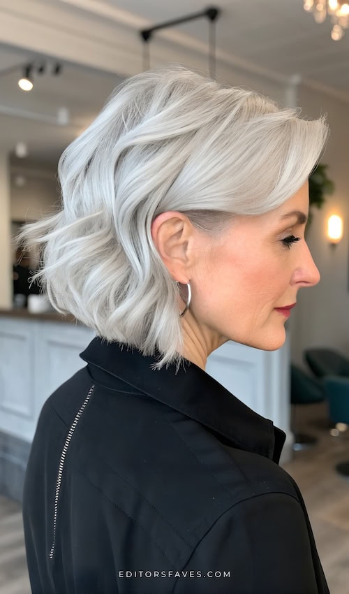 The layered bob is timeless. But a gray layered bob? That’s “she runs her own company and goes to Pilates” energy. It’s also super low-maintenance, especially during the transition phase. A stylist can blend your natural gray with icy highlights to make the grow-out feel intentional instead of patchy. Plus, it shows off your cheekbones like nobody’s business.