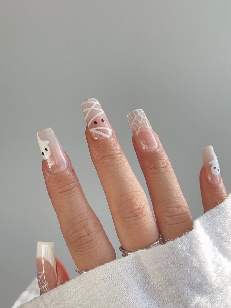 Sweet White Mummy and Ghost Nails
