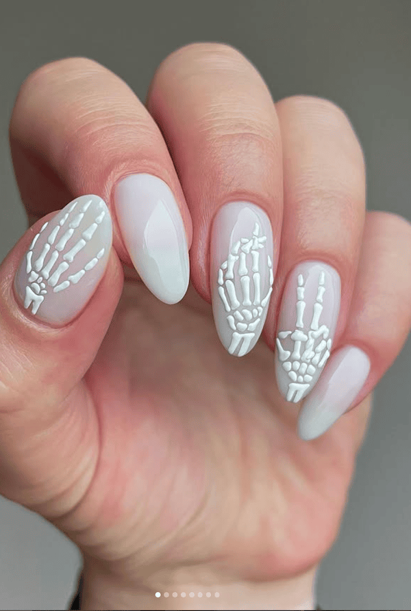I love this spooky skeleton hand line art style. You can easily recreate this X-ray skeleton-hand nail design with these stick-on nail decals!