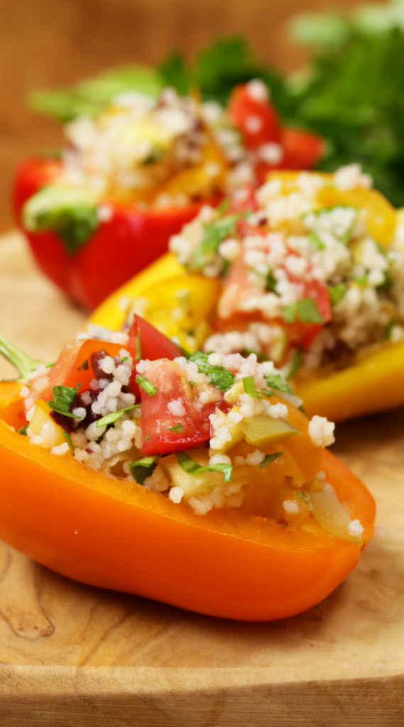Stuffed mini bell peppers are a colorful and healthy appetizer that I adore. The sweet bell peppers are filled with a savory couscous and veggie mix that’s both satisfying and light. They’re perfect for adding a splash of color to the table, and each bite is bursting with fresh flavors.