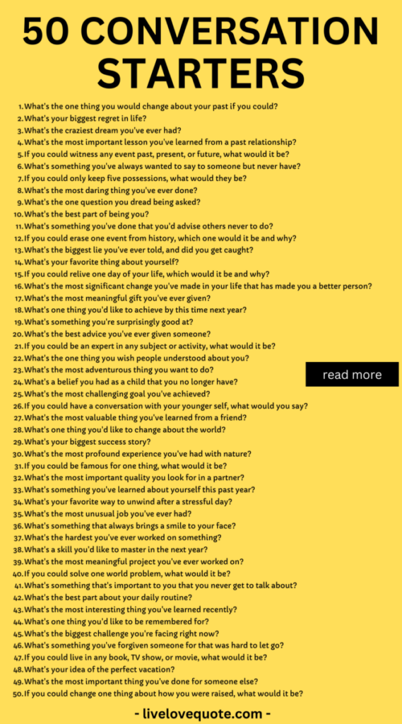These questions aren’t just great for one-on-one conversations, they’re also a hit at parties or gatherings when you want to keep the energy going. They always bring something special to the table. I hope you enjoy these and making your next conversation one to remember!