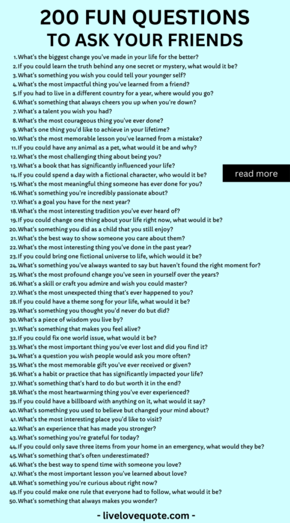 Whether you’re breaking the ice with someone new or looking to deepen connections with familiar faces, these questions have got you covered.