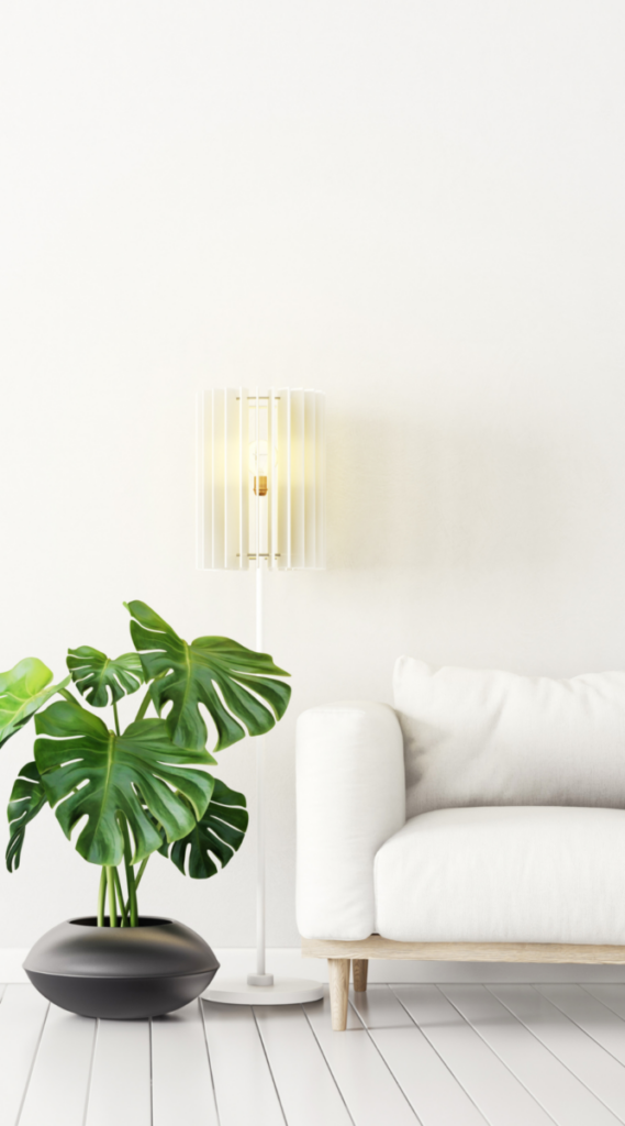 The clean white sofa paired with that gorgeous monstera plant creates such a fresh, lively vibe. I’m obsessed with how the sleek floor lamp adds a warm glow, tying everything together perfectly. It’s the ultimate modern setup with just enough greenery to feel alive.