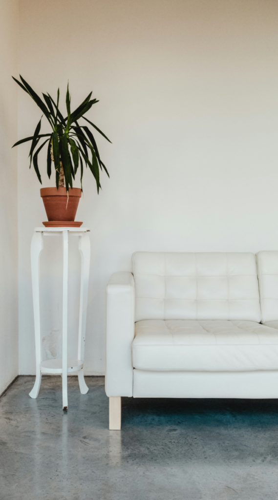 This white leather sofa is so sleek and modern, it’s such a versatile piece for any living room. I love how the terracotta planter adds just the right touch of warmth and color. It’s simple, clean, and the perfect balance between fresh and cozy.