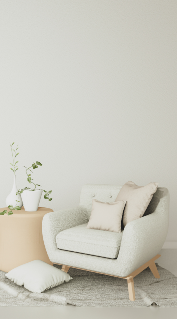 I absolutely love this chair! It’s giving cozy-meets-modern with those soft textures and the perfect little pop of greenery. I can totally see myself grabbing a blanket, curling up here, and forgetting about the world for a while, it’s just so calming and inviting.