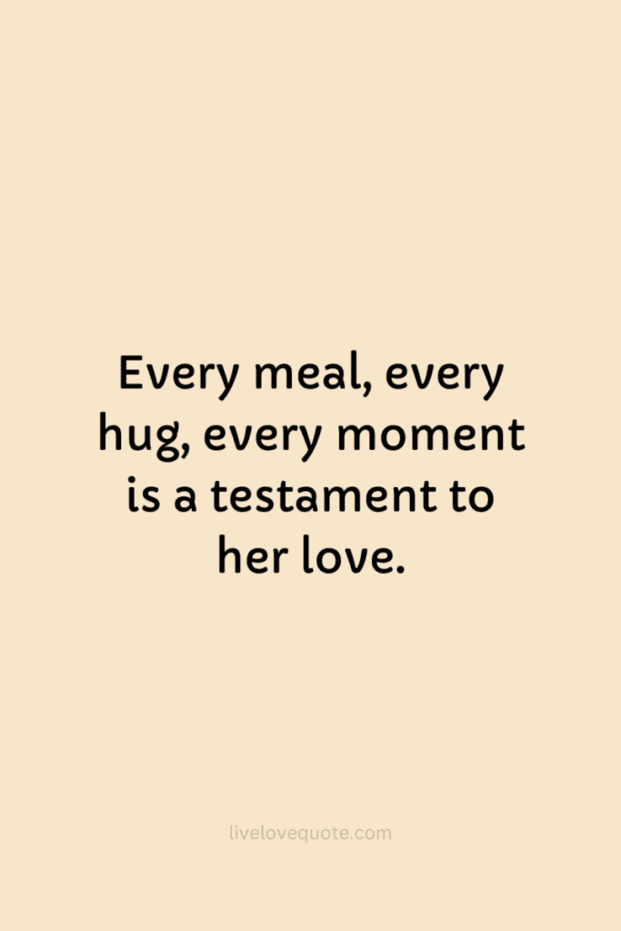 16. “Every meal, every hug, every moment — a testament to her love.”