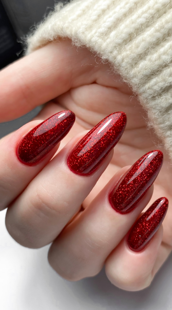 These red glitter nails are bold but super easy to pull off for any New Year’s plan. The sparkles give them a little extra pop, but they’re not too flashy—just the right amount of festive. They’re perfect for cozy sweater moments or a fun night out. Simple, fun, and totally New Year-worthy.