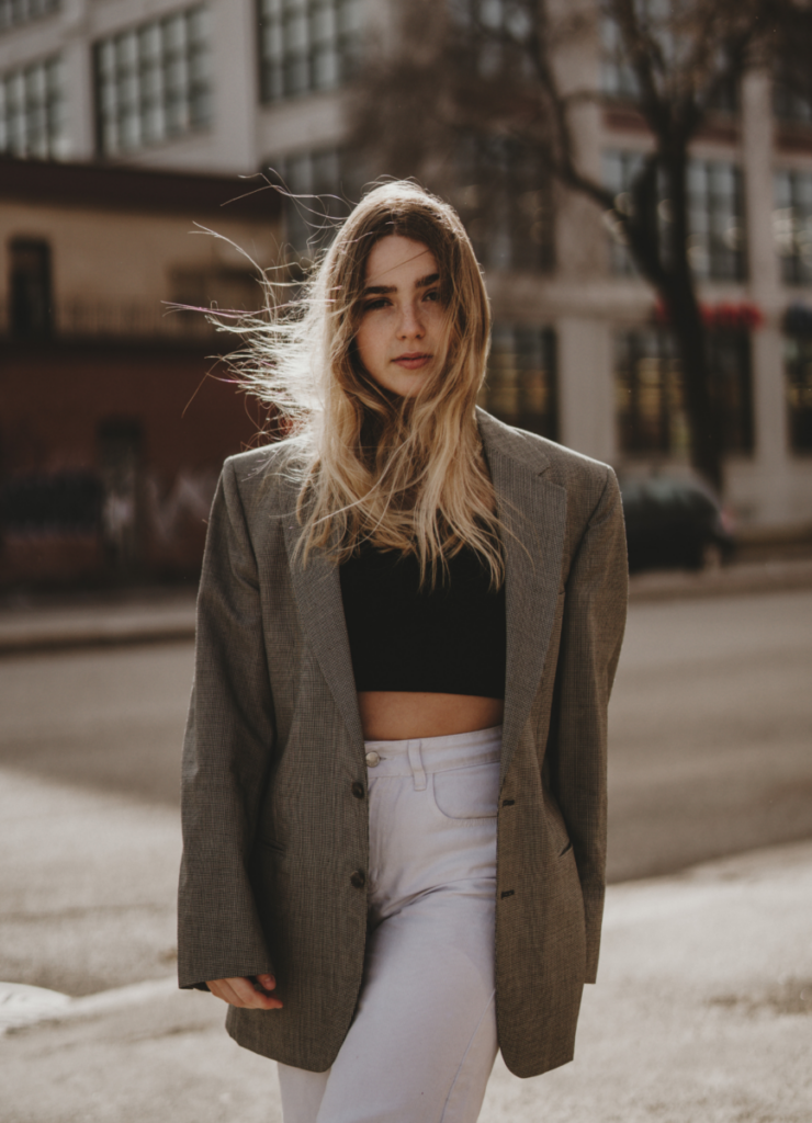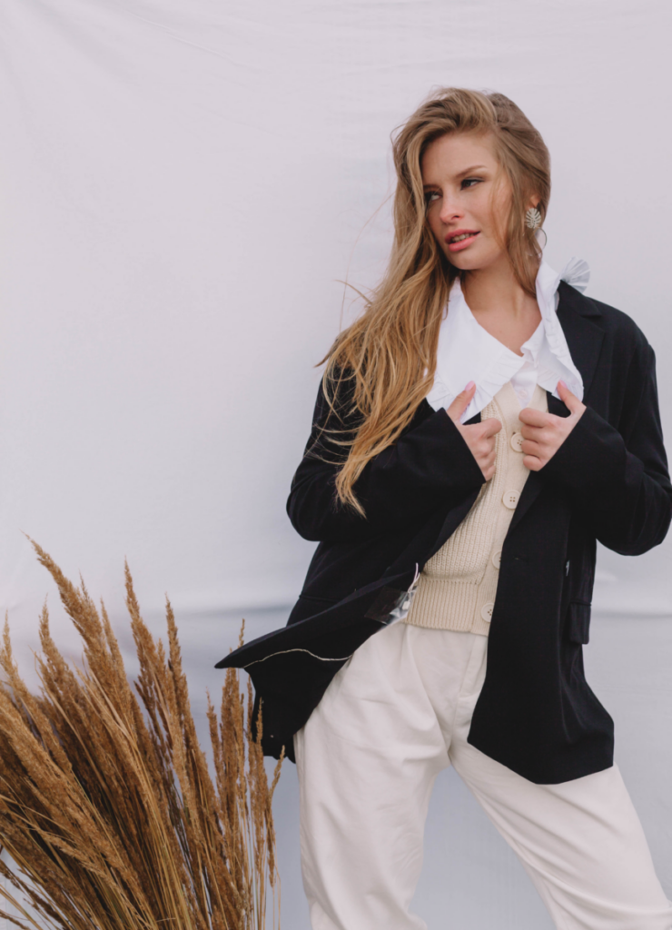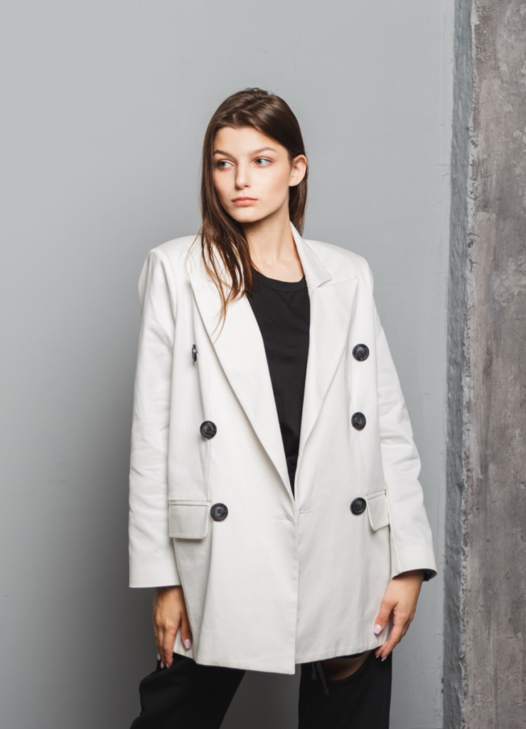 A structured white blazer over a black top is one of my favorite looks. It’s simple but so powerful, like you could walk into any room and own it. The oversized fit makes it modern, while the contrast buttons add just the right amount of detail.