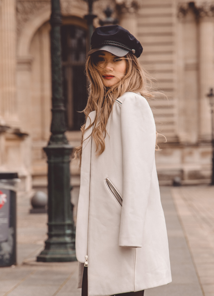 This coat is pure sophistication, and the captain’s hat adds such a cool, European touch. It’s giving old money meets fashion editor walking the streets of Paris. The creamy tones keep it timeless, and that red lip is the perfect power move.