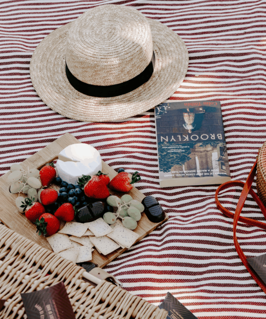 Go simple and stylish. Grab a wheel of brie, some fresh grapes and strawberries, and throw in a few crackers and chocolates. Bring a book you actually want to read and lay it all out on a textured blanket for that chill, but aesthetic look we all love.
