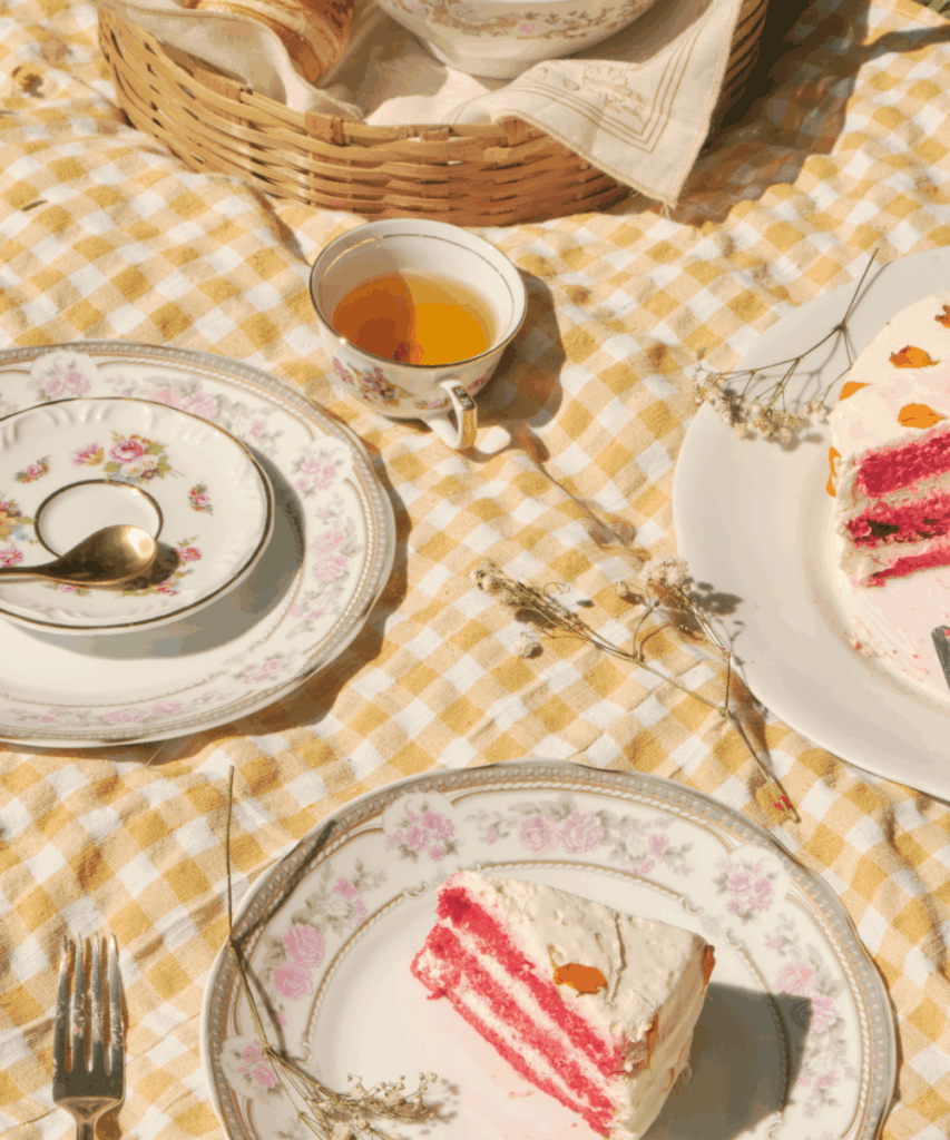 This is my dream tea picnic, hands down. That yellow gingham blanket with the floral china and layered cake…I’m obsessed. It’s such a romantic, vintage look, like something you’d plan just for the fun of it with your best friend or even solo with a good book.