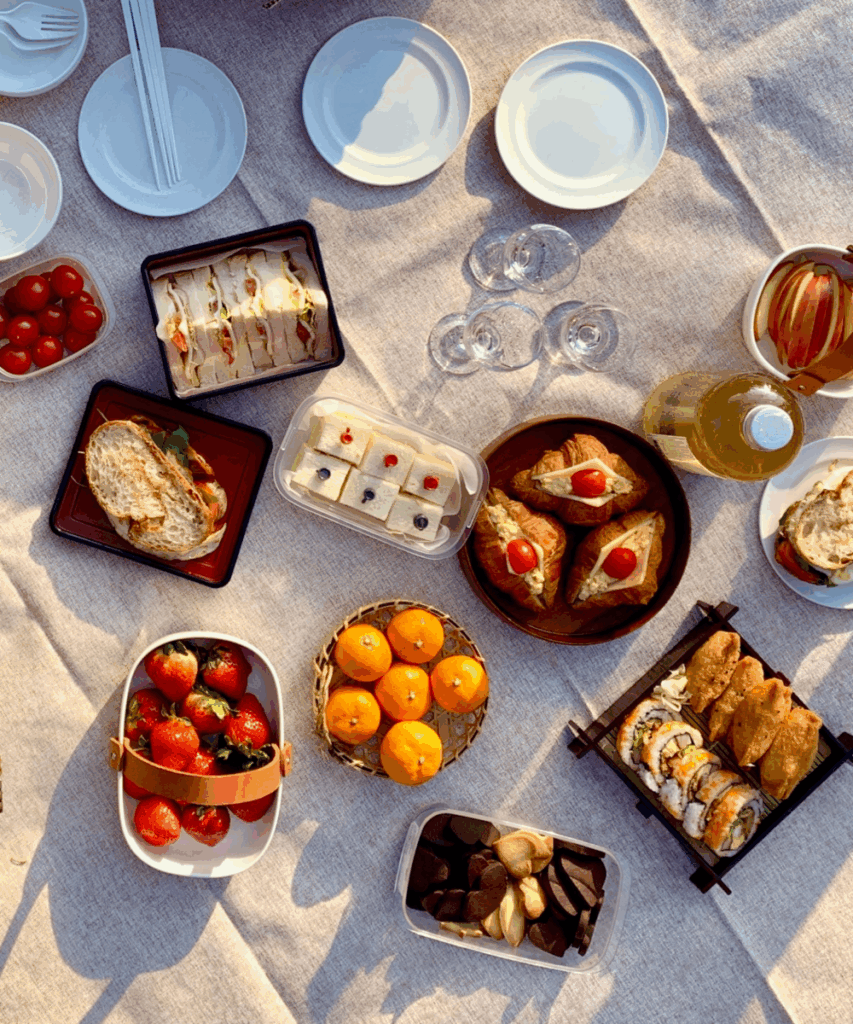 Next, think about comfort. Bring utensils, napkins, wipes, and something to hold drinks so they don’t spill. And if you’re taking photos, it’s all about those tiny details, matching plates, pretty cups, or a cute basket totally elevate the look. But honestly, as long as there’s food and sunshine, you’re doing it right!