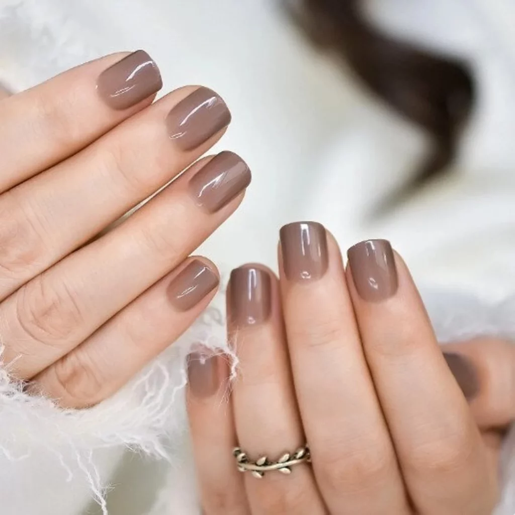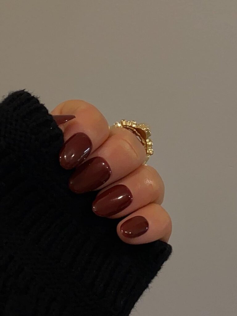 A smooth sweep of cocoa brown on short nails feels effortlessly chic for autumn, especially when paired with cozy knits and crisp air. This glossy shade sits right in that sweet spot between neutral and bold, giving your hands a refined, polished vibe without being too loud.