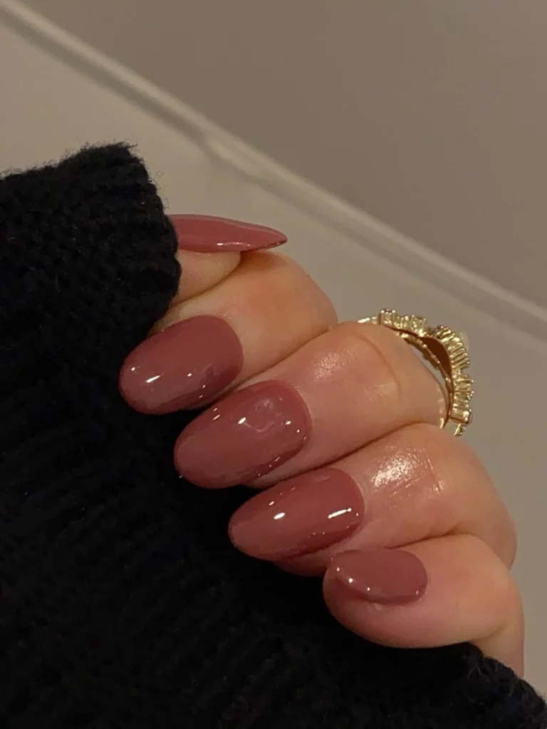 A dusty rose polish on short, rounded nails strikes a lovely balance between cozy and chic. The color has a muted elegance that feels perfect for crisp autumn afternoons, offering a softer alternative to bold reds and browns.