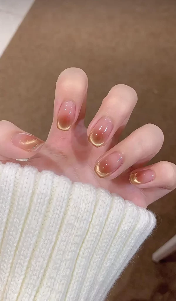 The ombre blends beautifully, making the nails appear longer and elegant even at a short length. It’s a look that pairs effortlessly with cozy scarves and warm drinks, adding a subtle but stylish nod to autumn’s earthy palette.