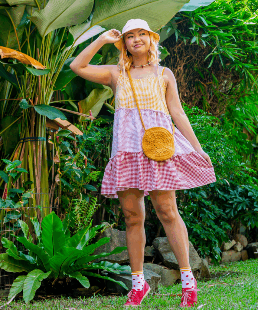 This dress makes me feel like summer’s biggest fan. I mean, gingham in yellow, lavender, and red? It’s basically sunshine in fabric form. The tiered design gives it a bouncy, twirly feel, and the colors just work together so well.
