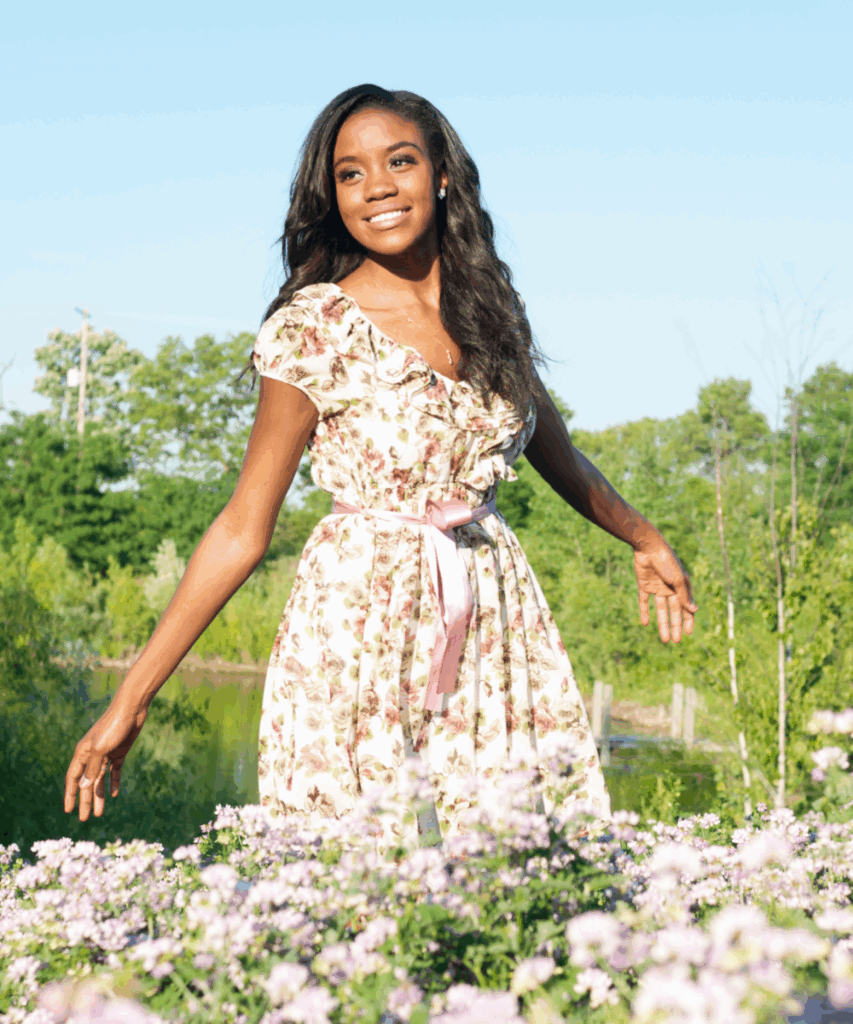This floral dress with the pink sash is the definition of romantic summer style. The soft print and ruffled neckline give it such a dreamy, feminine feel, and the satin ribbon at the waist adds the perfect amount of sweetness. It reminds me of a flower field or a soft summer breeze.