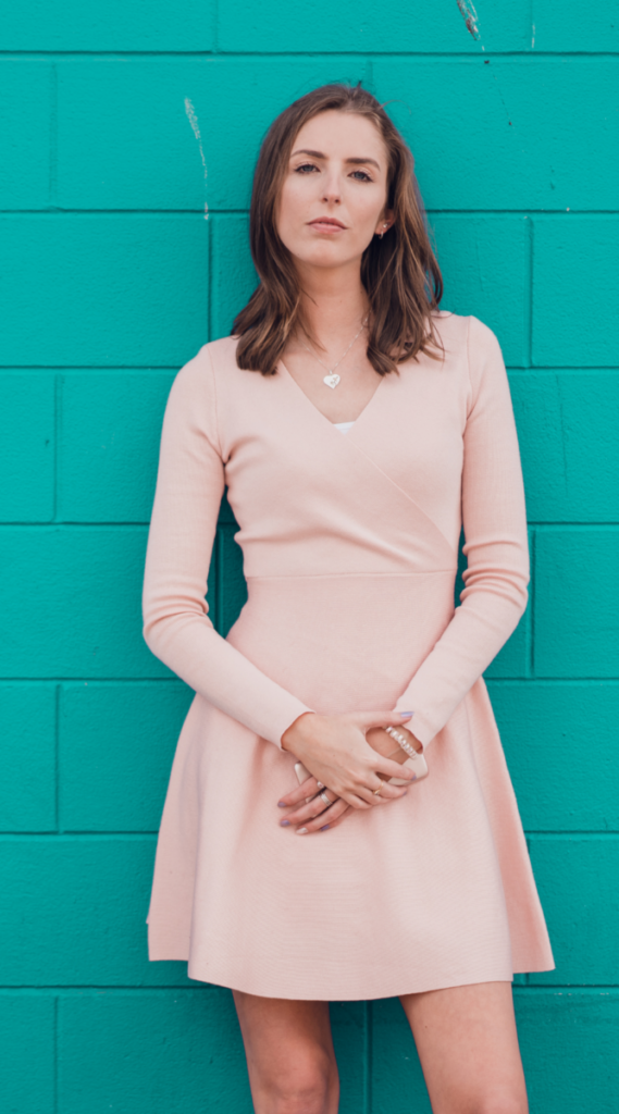 This soft peach dress is perfect for a quiet, romantic Valentine’s. I love how simple yet elegant, it is ideal for a dinner at home or a cozy restaurant. You’d feel graceful and pretty in this timeless style.