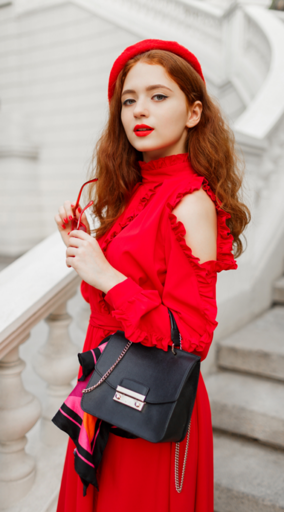 This look reminds me of Paris in February, elegant and so romantic! The red dress with ruffle details and a chic beret is a statement. You’d feel so stylish wearing this to a Valentine’s dinner, maybe at a candlelit bistro with a view.
