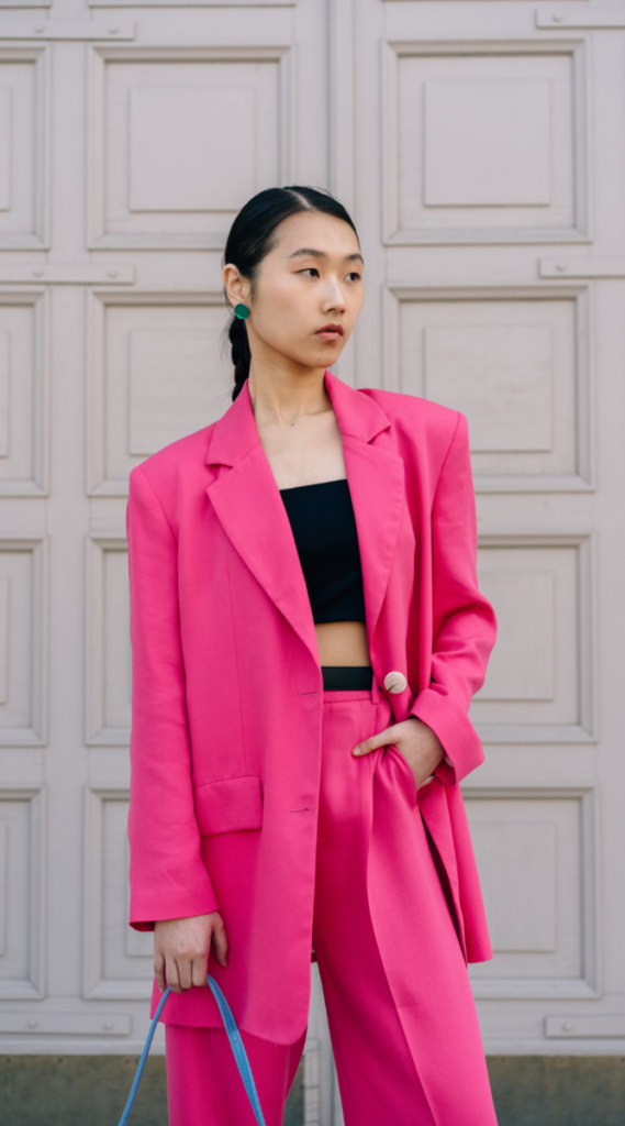 The hot pink blazer paired with a simple black base is such a power move! I’d wear this on a more casual but still polished Valentine’s outing, like a gallery date or rooftop drinks. And let’s be real, the vibrant pink would make anyone feel bold and beautiful.