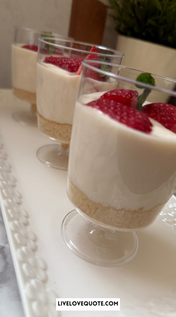These mini cheesecake cups are perfect for dessert lovers at your party. Start with a graham cracker crust, fill it with cheesecake filling, and top it with cherry or strawberry pie filling.