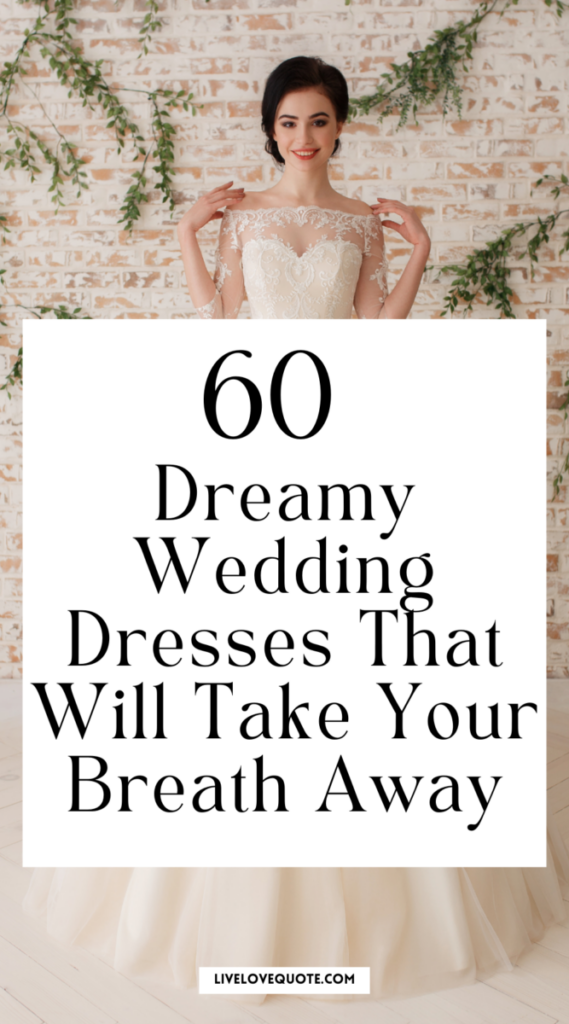 This one’s like a breath of fresh air, straight out of a bohemian fairy tale. It’s all about that laid-back, yet sophisticated vibe with its dotted tulle and flowy A-line cut. The delicate puff sleeves add just a hint of whimsy, making it a go to for the bride who’s all about that natural, earthy charm. Walking down an aisle of wildflowers? This dress screams ‘yes’.